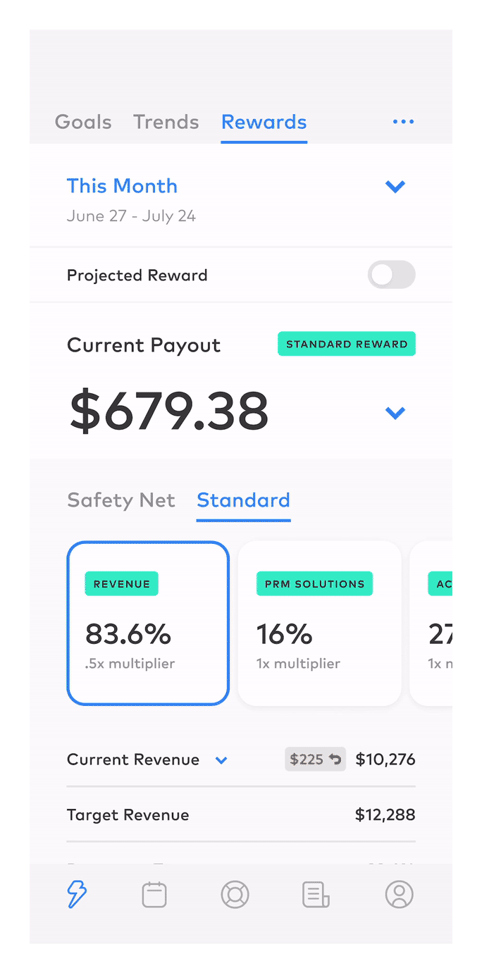 At an aggregate, Projected Rewards was a great way for Experts to understand how their performance early in the month was impacting their pay out at the end, but to truly motivate Experts, we needed to break down their performance more. We needed a way to show how each customer visit had an impact.